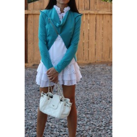 Рукава-декор. Спереди косая молния-застежка.